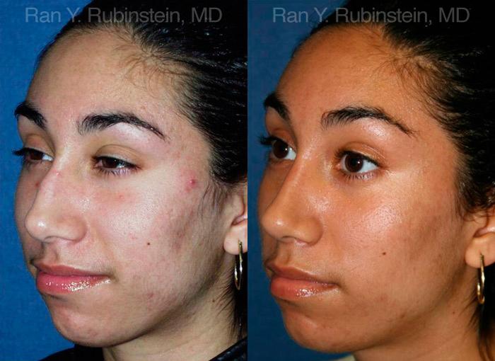 Before: 25 year old female with Hispanic background, feels self conscious about the bump on the bridge of her nose, as well as the crookedness to the right.