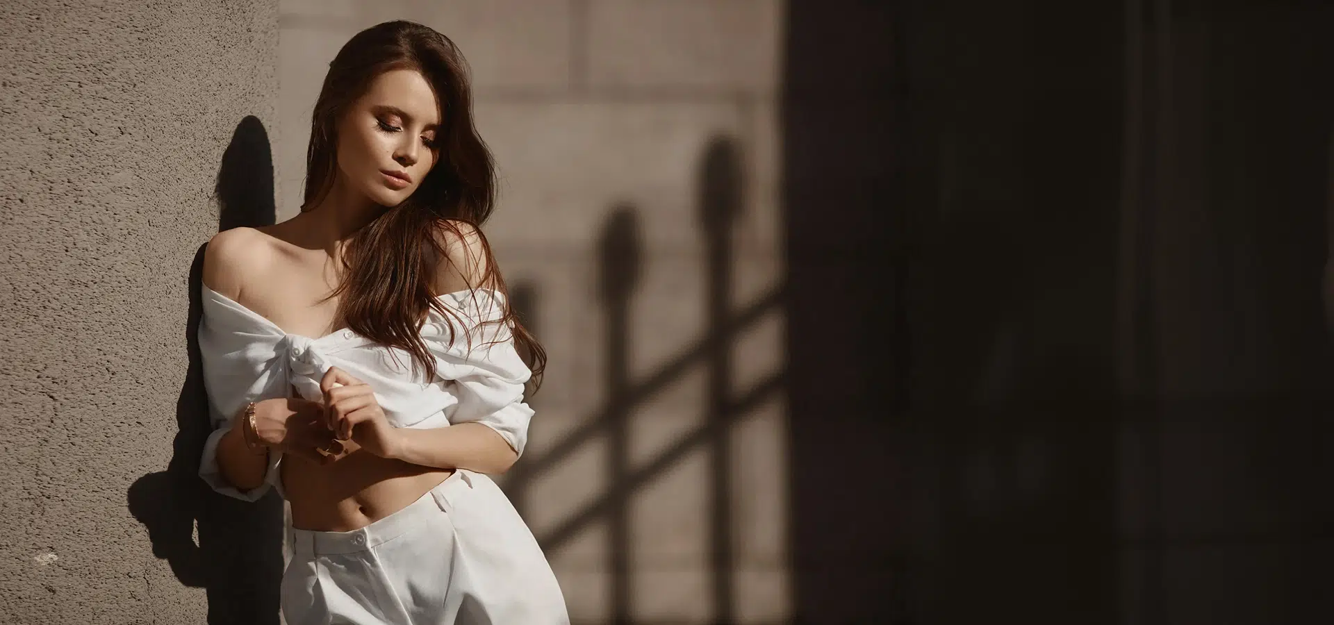 Woman in white outfit beside text explaining Alloclae treatment for body contour irregularities and asymmetry